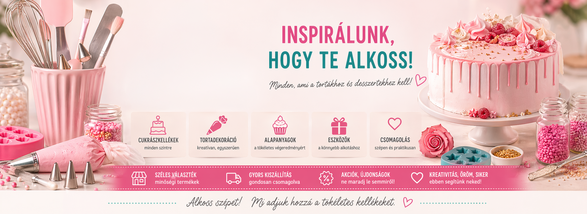 🎂 Legyen szó esküvői tortáról, szülinapi süteményről, karácsonyi bonbonról vagy egy spontán hétvégi sütésről, nálunk megtalálod a legjobb cukorgyöngy mixeket, pasztákat, porfestékeket, habzsákokat, kiszúrókat, sütipecséteket, ajándékdobozokat és még sok mást!