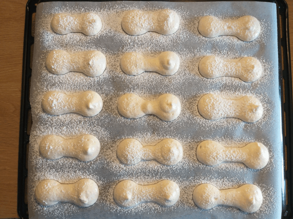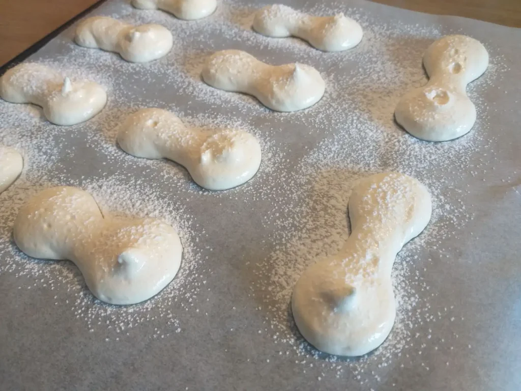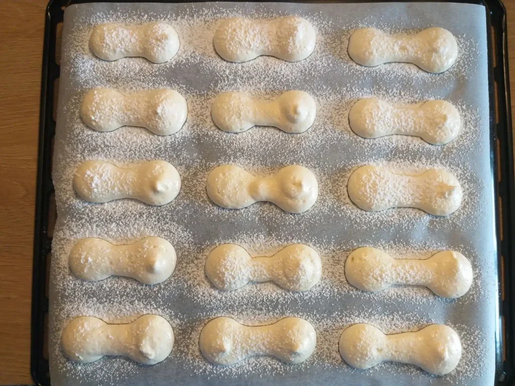 Nagyjából 10 cm hosszú babapiskótákat készítek,