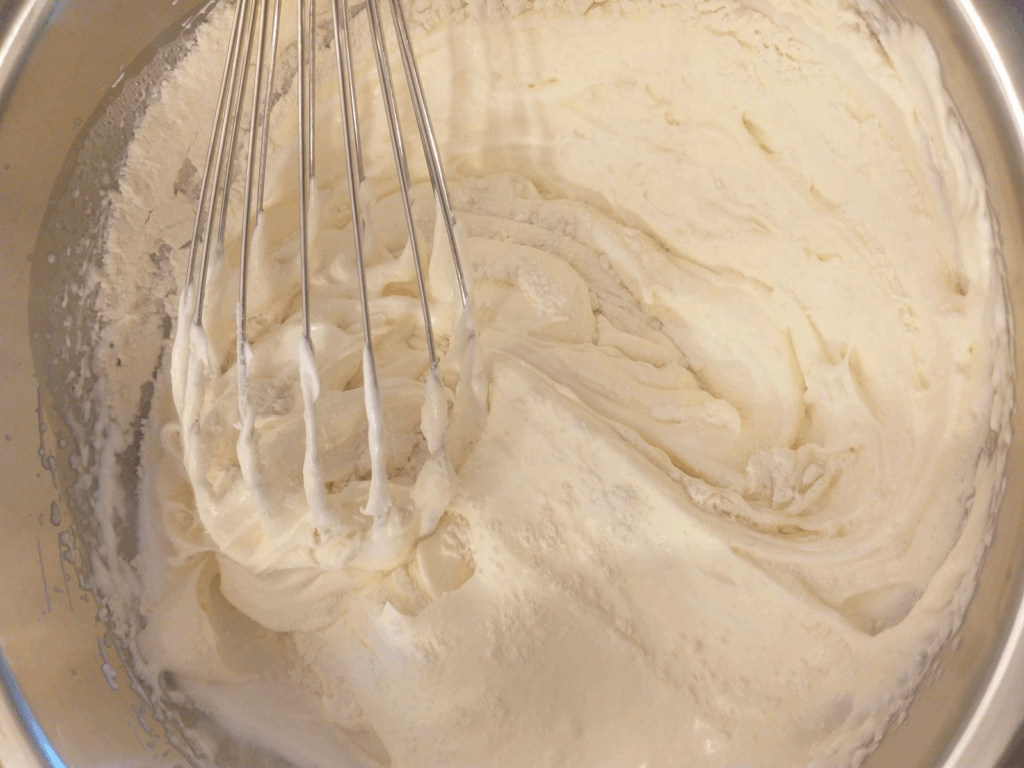 Óvatosan egy kézi habverővel forgatom bele.