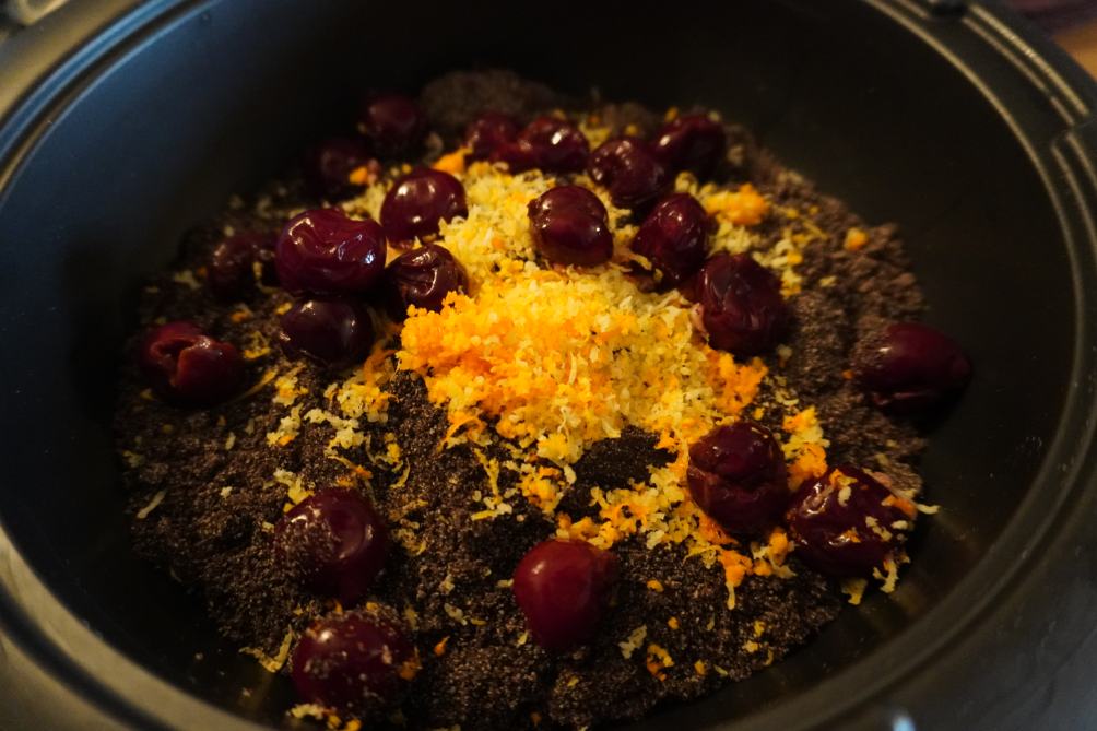 Ha összeforrt, ráöntöm a szárazanyagra és szép egynemű töltelékké keverem.