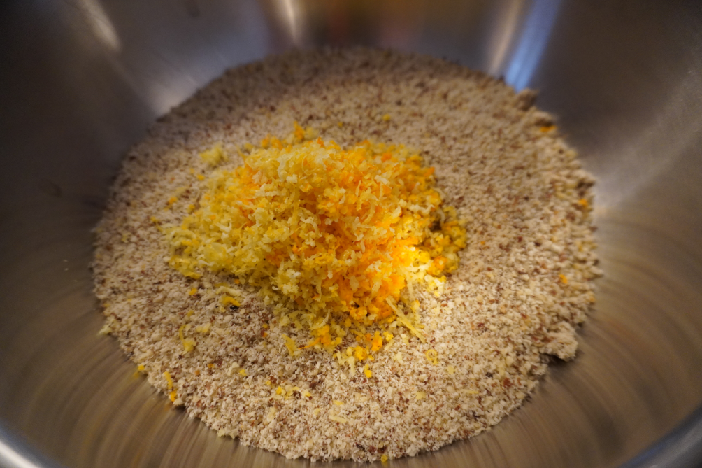 A töltelékekhez egy – egy tálba össze mérem a száraz hozzávalókat a cukor kivételével.