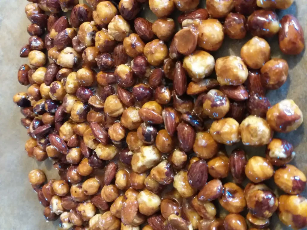 A mogyorókat és mandulákat sütőben 180°C – on 15 percig pirítom