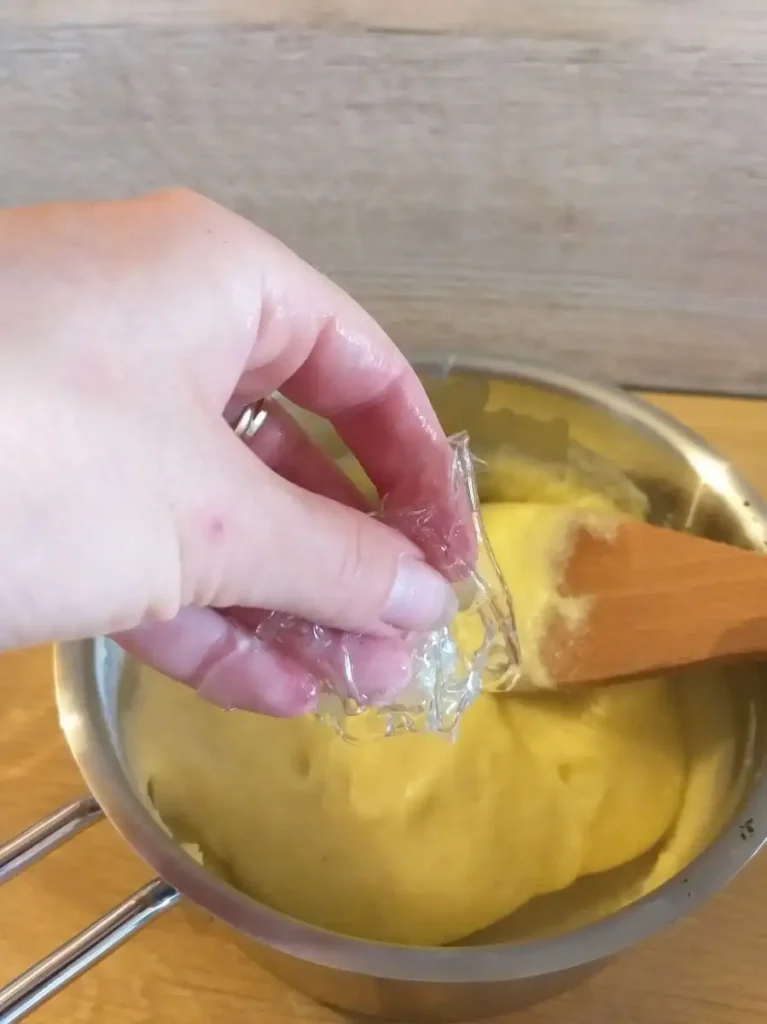 hozzá keverem a megduzzadt és kicsavart zselatint.