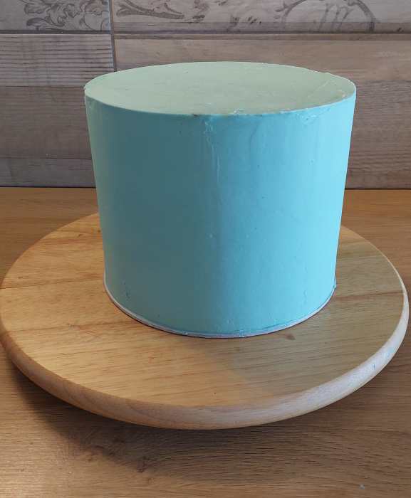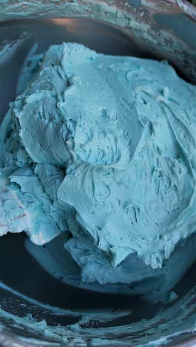 Nem maradt hátra más, minthogy ezt a csodaszép kék krémet felvinni a tortára!