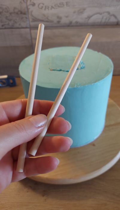 Mivel emeletes torta készült nem maradhatott el a tortarúd használata sem!