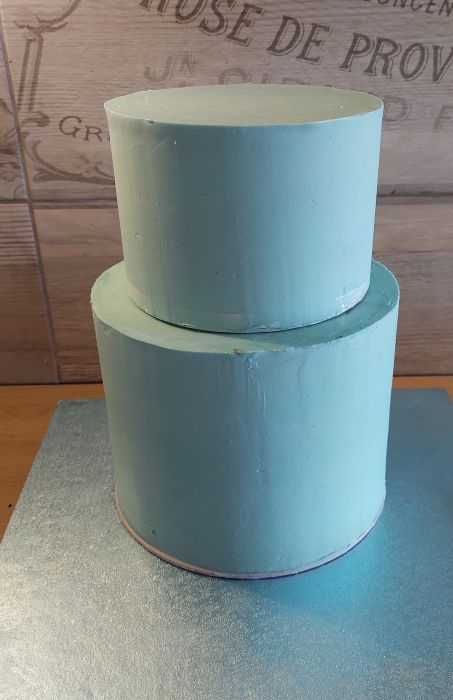 Majd a torta alá pedig egy , a tortánál nagyobb átmérőjű torta dobot helyezek.