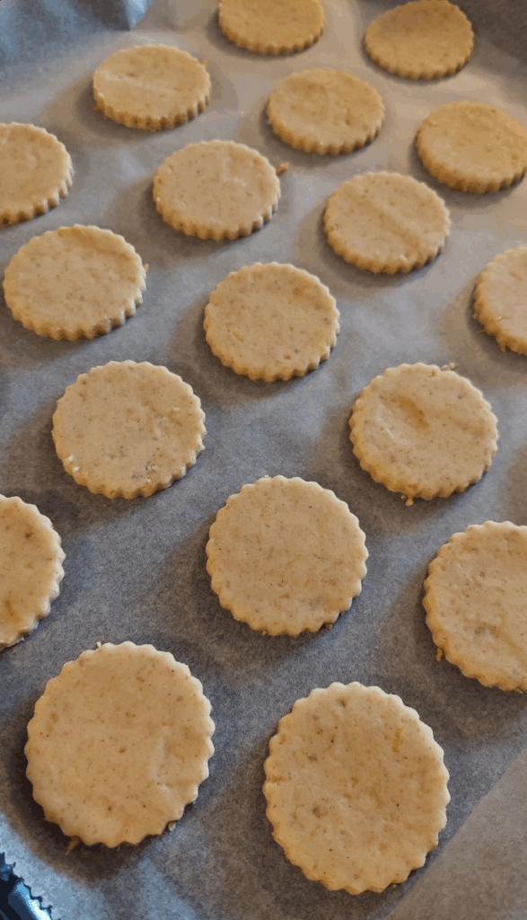 2 sütőpapír közt kb 3mm vastagra nyújtjuk. majd szaggatjuk.