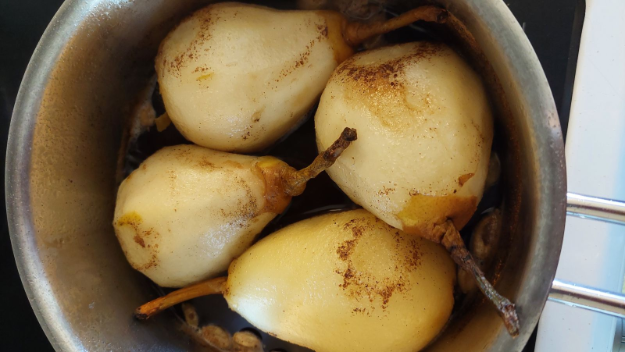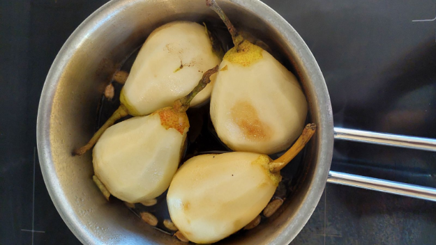 összeforralom, majd bele helyezem a hámozott körtéket