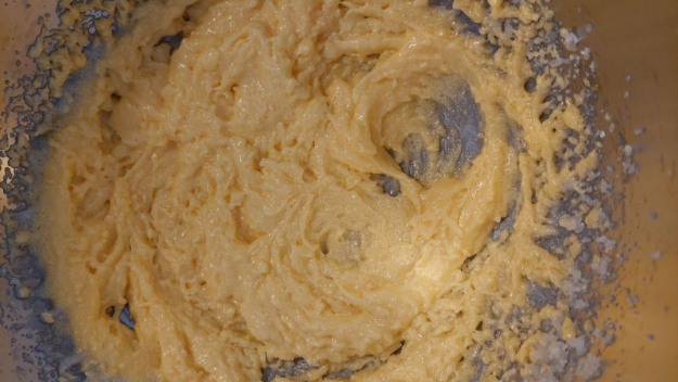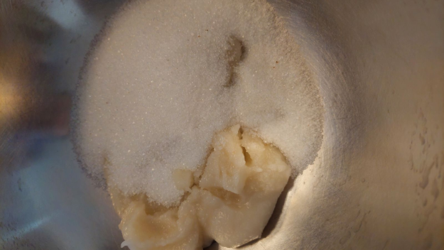 A piskótához a zsiradékot és a fele cukrot elkezdem kihabosítani
