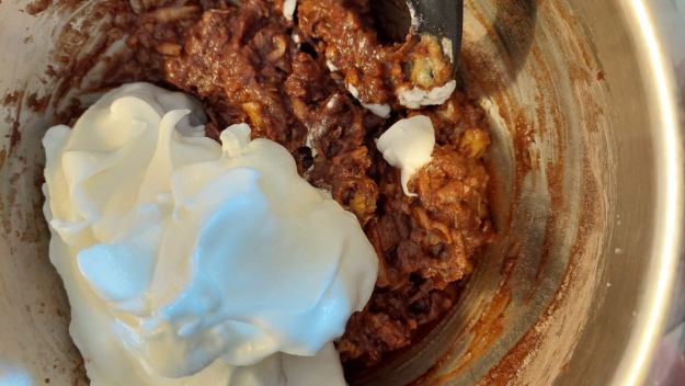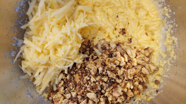 Hozzá adom a kikevert masszához, az 1db reszelt almával vagy körtével együtt.