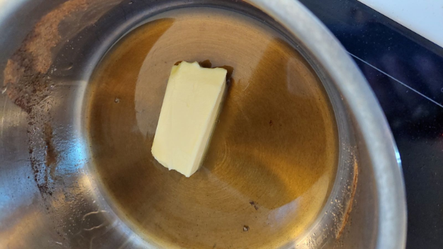 50g juharszirupot és laktózmentes vajat teszek egy lábasba