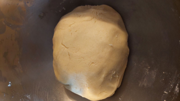 A lisztet elmorzsolom a zsírral, majd a tészta  összes többi hozzávalójából egynemű tésztát gyúrok.