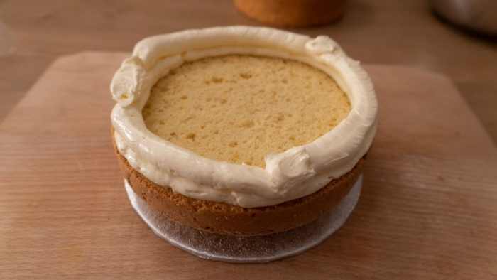 A piskóta teteje legye az alja, így szépen lehet korrigálni, ha a teteje nem egyenes.