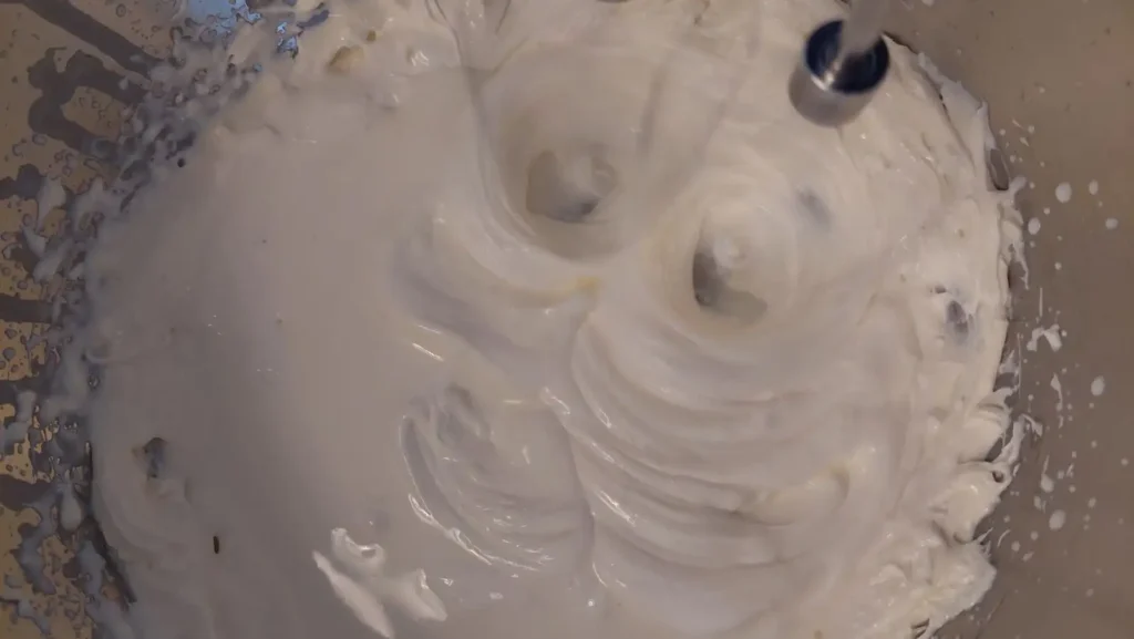 Fokozatosan adagoljuk hozzá a jéghideg tejszínt és magas fokozaton verjük tovább!