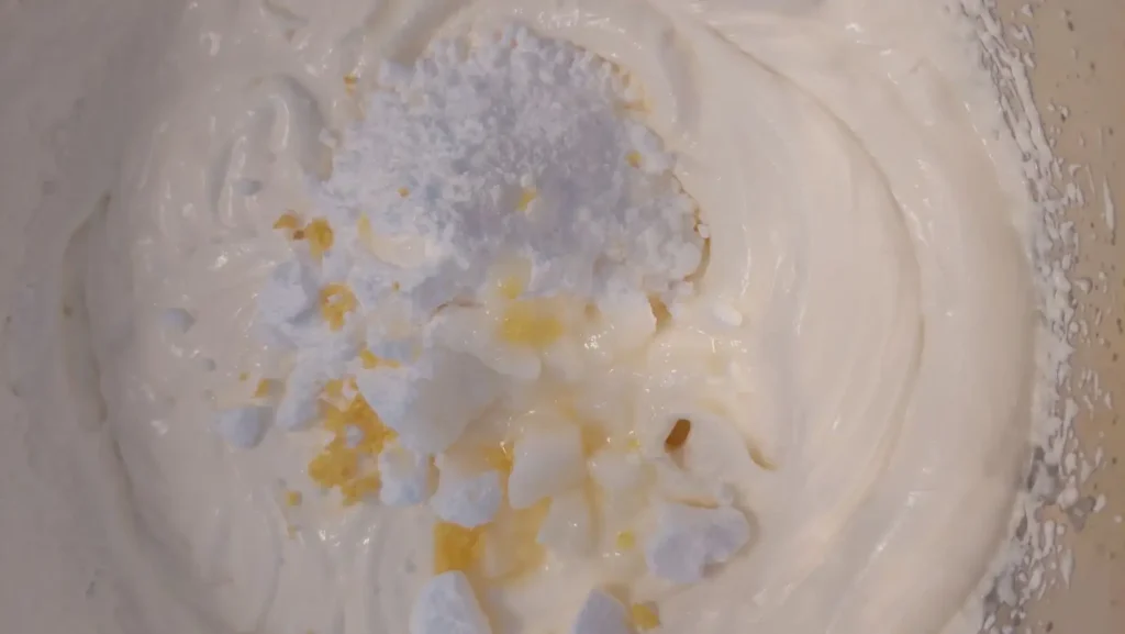 Mielőtt teljesen kemény, habos krémet kapunk, előtte adjuk hozzá a citromlét, és a reszelt gyömbért és citrom héjat!