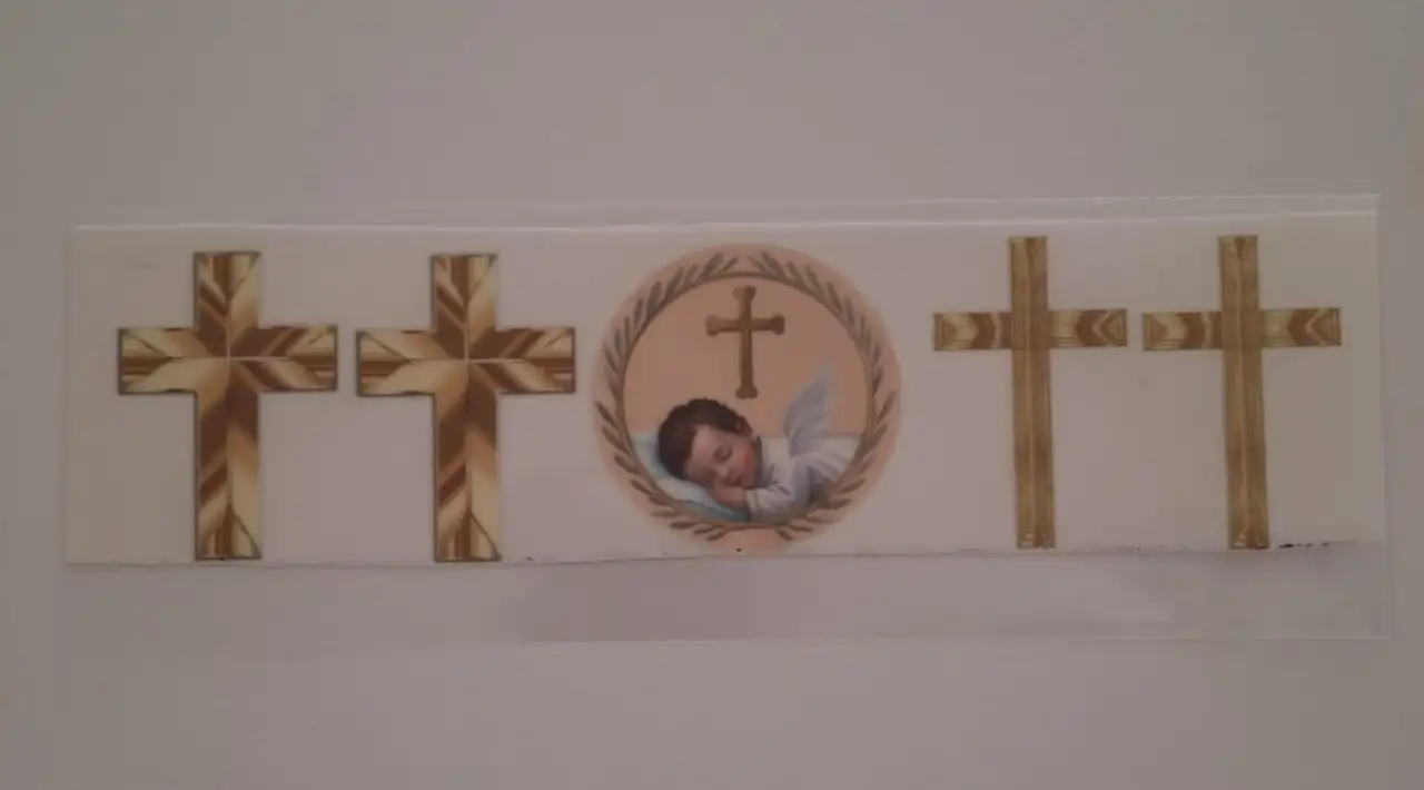 kerek minta kisbabával 5cm átmérőjű 1db, kereszt 5cm magas 4db 2féle mintával