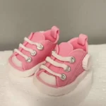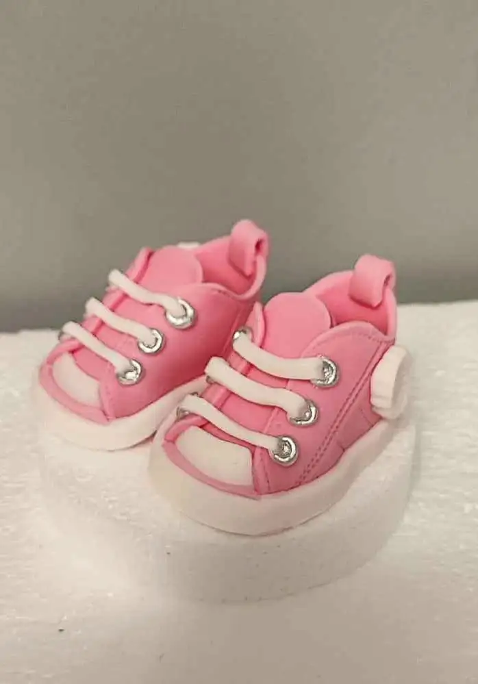 Nem ehető cukorfigura rózsaszín babacipő torták díszítéséhez.