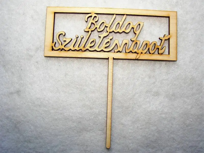 Díszítő beszúró - Natúr  fa boldog születésnapot téglalap beszúrós tortadísz  11cm x 11,5cm