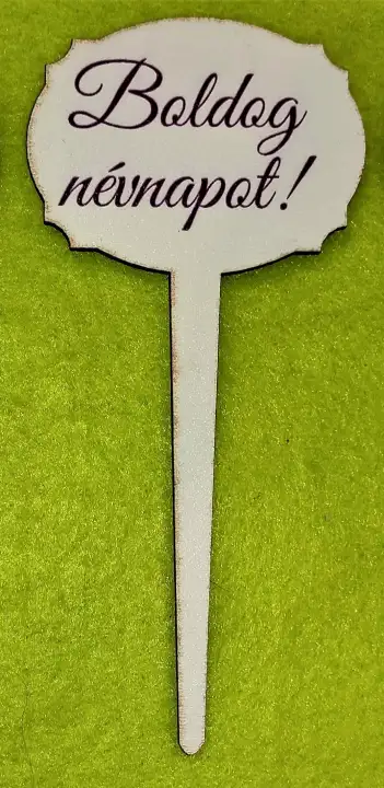 Díszítő beszúró – Nyomtatott fa nagy beszúrós tábla Boldog névnapot felirattal 14cm x 6,5cm