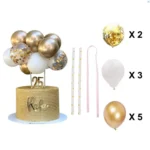 Lufis sütibeszúró tortadekoráció arany – fehér színben