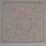 Ezt a szilikon anyagú formázót , különböző fondantból , marcipánból , cukormasszából készült figurák,