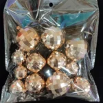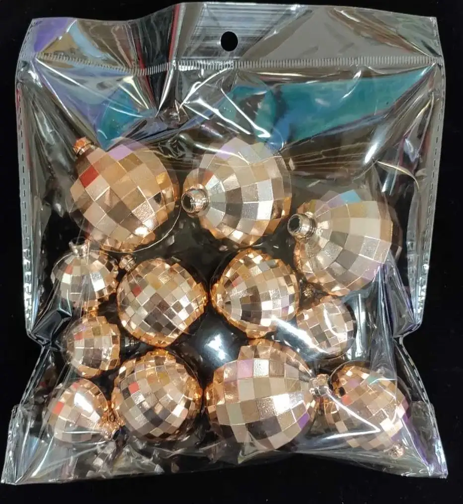 A csomag vegyesen tartalmaz 2,5cm, 3,5cm és 4cm átmérőjű ezüst gömböket.
