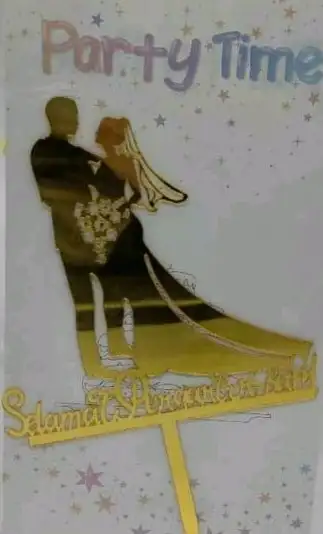 Torta beszúró – Esküvői pár – Akril Arany Csokorral