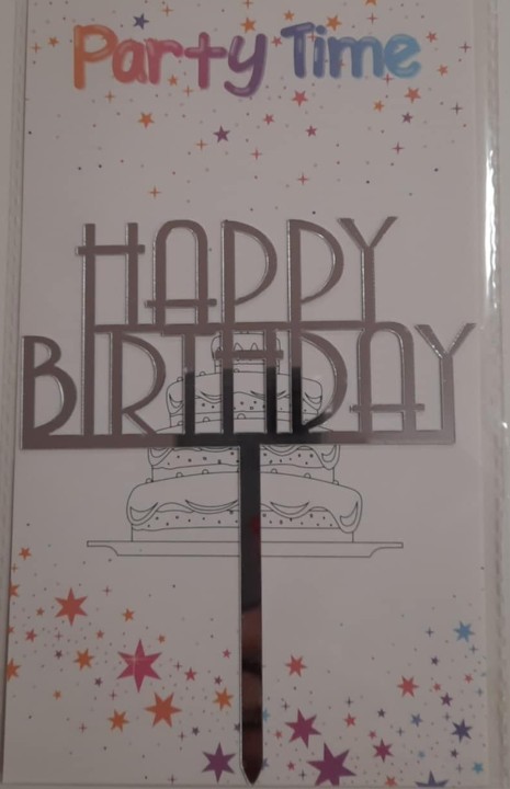 Torta beszúró – Happy Birthday akril szögletes nagybetű – Ezüst