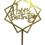 Torta beszúró ” Happy Birthday” – felirat arany négyzetben – akril