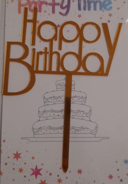 Torta beszúró – Happy Birthday felirat -gömbölyű betűk – akril Arany
