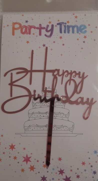 Torta beszúró – Happy Birthday felirat – Hurkos B-betűvel – akril Rose Gold
