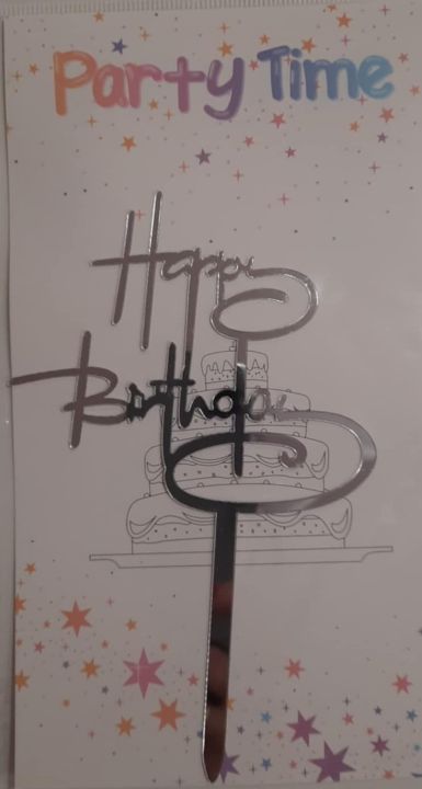 Torta beszúró – Happy Birthday felirat – Hurkos Y-betűvel – akril Ezüst