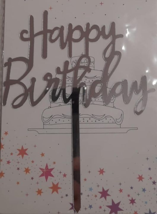 Torta beszúró – Happy Birthday felirat – kötött kis betűvel – akril Ezüst