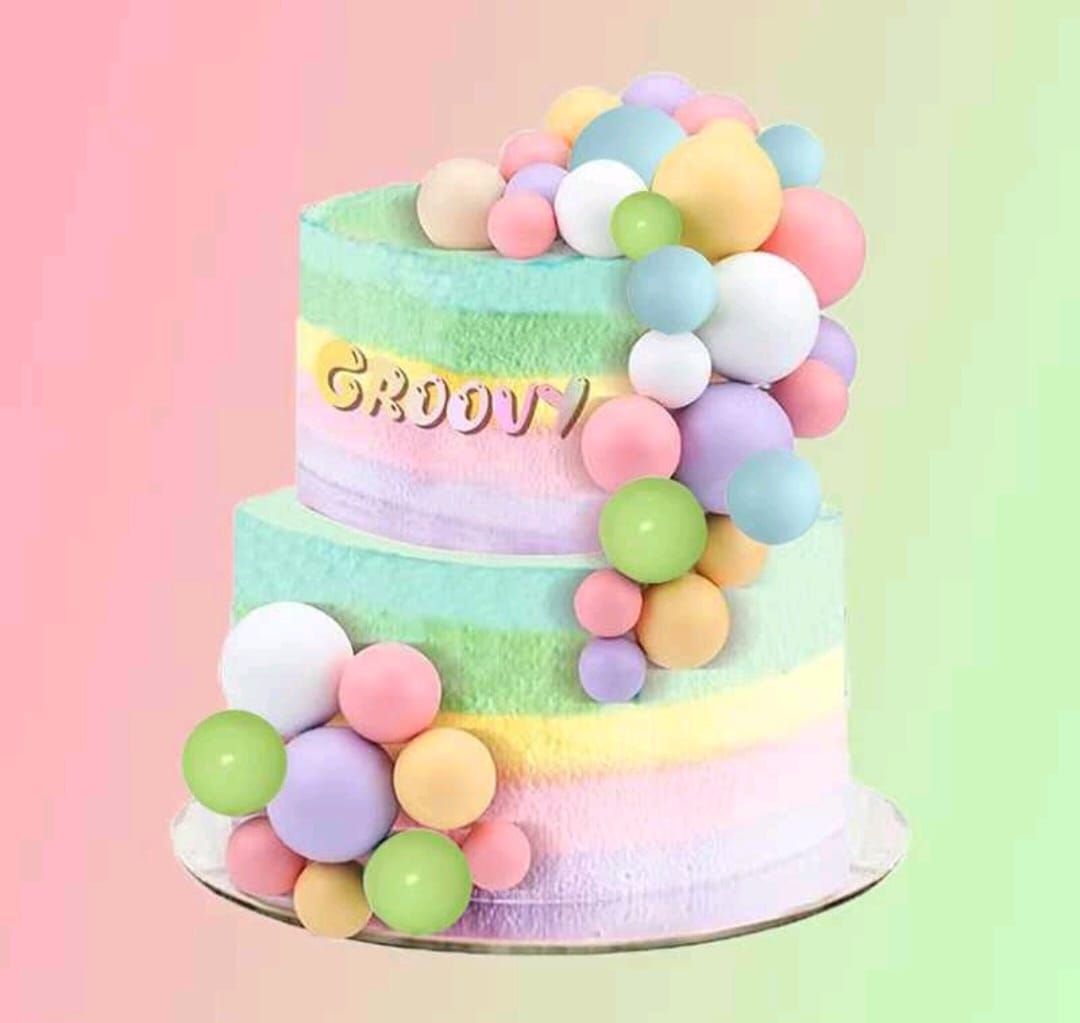 Szivárvány beszúrható műanyag gömbök torták dekoráláshoz.