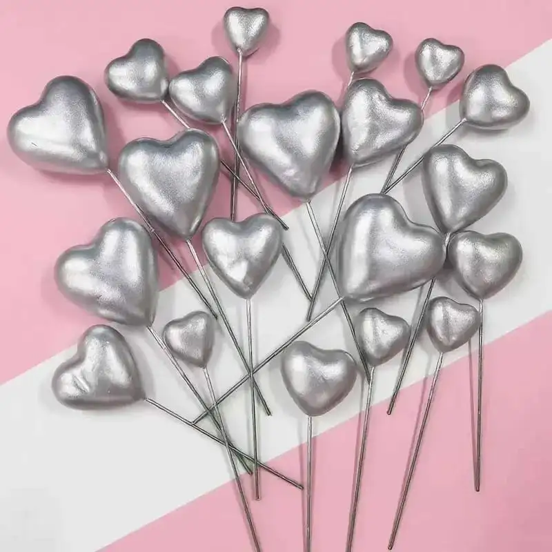 Ezüst beszúrható műanyag szívek torták dekoráláshoz.