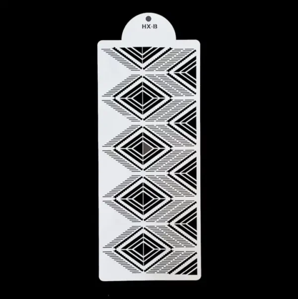 Fondant burkolatra vagy jól kihűtött vajkrém burkolatos tortára illeszd rá a stencilt, majd a mintát kend át krémmel, cukormázzal, vagy fesd ki ecsettel vagy szórópisztollyal!