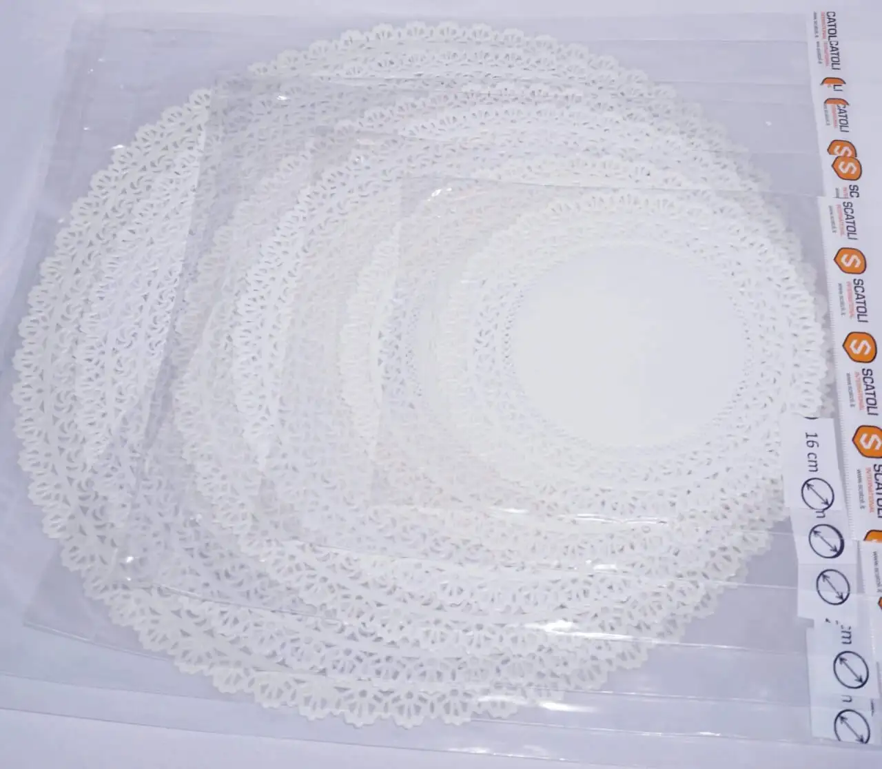 16 cm átmérőjű, kerek , mutatós, zsírálló tortacsipke.