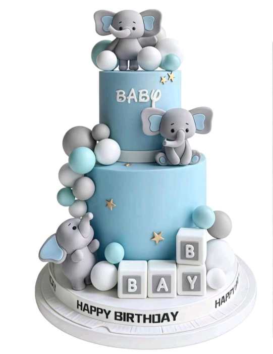 Rendkívül mutatós elefántos tortadekorációs szett és beszúrós tortadísz babaváróra vagy szülinapi partyra.
