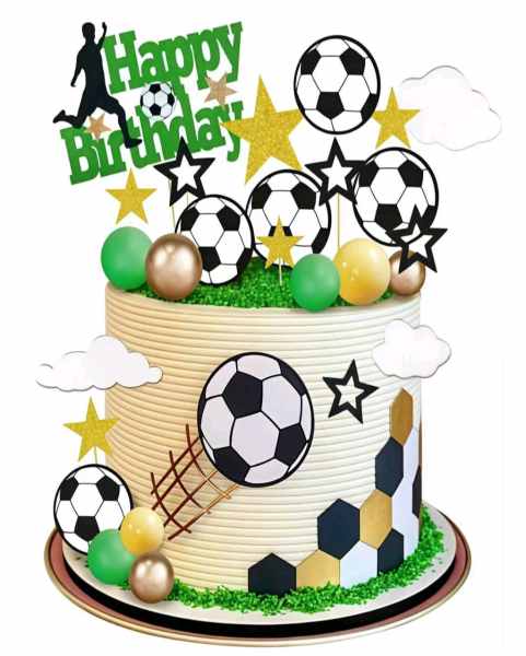 Rendkívül mutatós tortadekorációs szett és beszúrós tortadísz focirajongóknak és focistáknak.