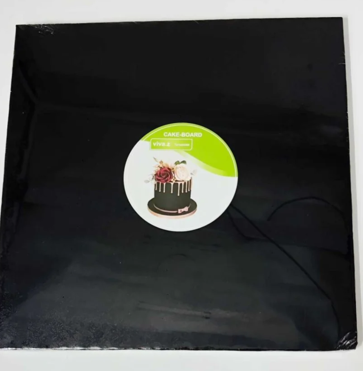 Fekete, kerek, 25x25cm-es szögletes tortadob.