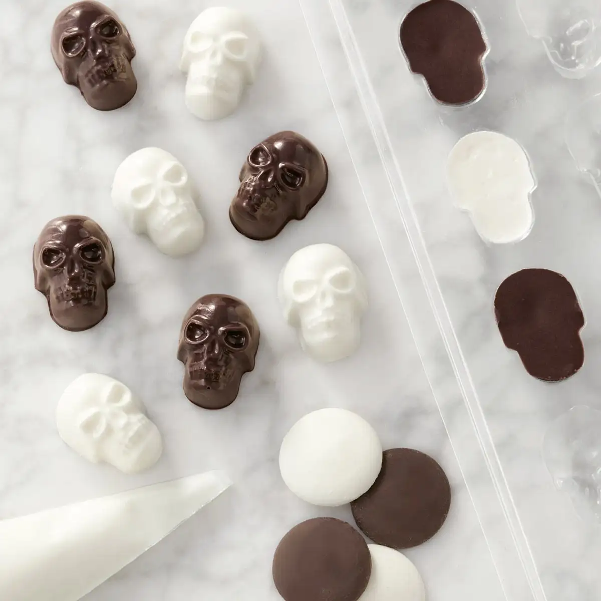 Ha színes bonbonokat szeretnél, akkor kakaóvajfestékkel vagy festett fehércsokoládéval fesd meg a formákat ecset vagy szórópisztoly segítségével!