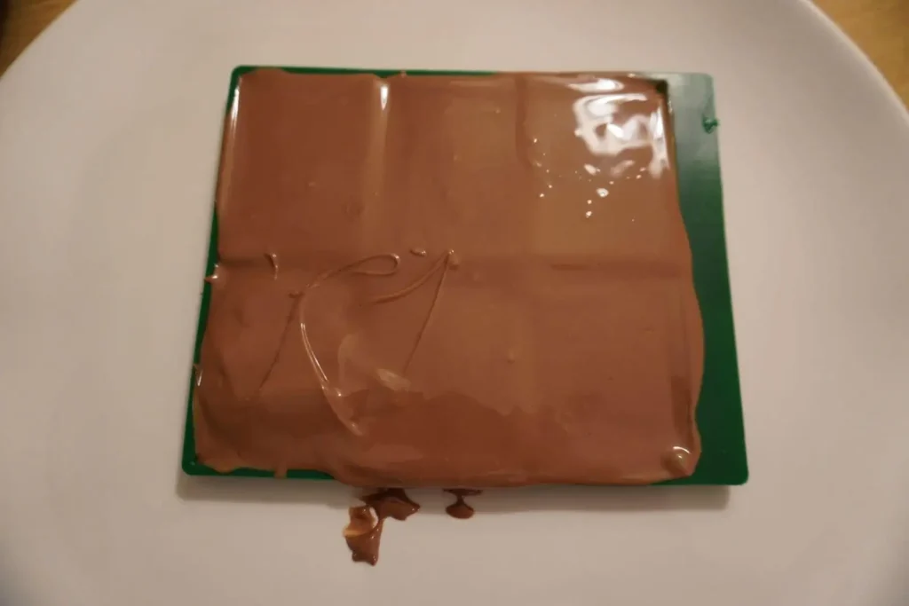 Majd egy mozdulattal a felesleges csokit a spatula segítségével lehúzom róla.